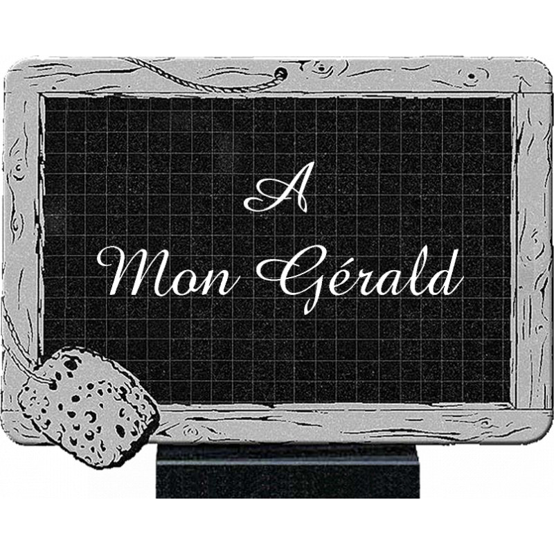 plaque granit noir jet black de 30cm x 22cm sur socle granit 14cm x 15cm, texte gravé blanc.