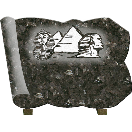 plaque granit 33cm x 23cm sur pieds alu, motif Egypte gravé. A personnaliser avec un texte gravé, un motif gravé, un bronze, une photo porcelaine.