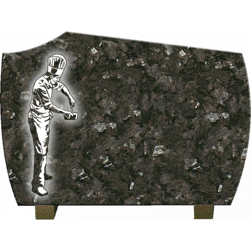 plaque granit 32cm x 22cm sur pieds alu, motif gravé cuisinier. A personnaliser avec un texte gravé, un motif gravé, un bronze, une photo porcelaine.