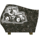 plaque funéraire en granit de 32cmX23cm sur pieds alu motif tracteur gravé. A personnaliser avec un texte gravé, une photo porcelaine.