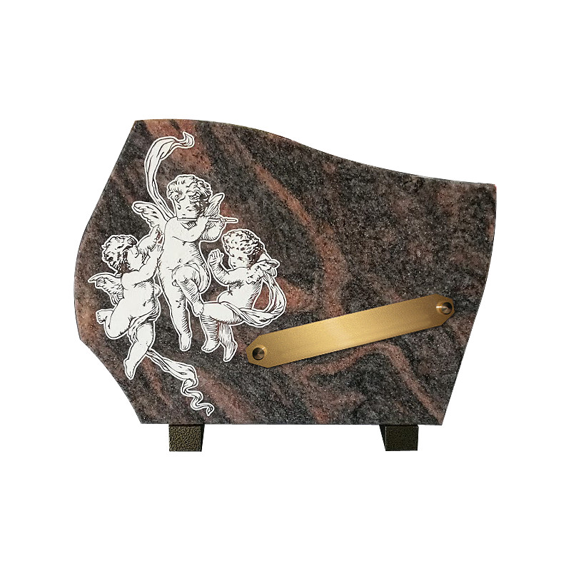 plaque granit himalaya 27cm x 20cm sur pieds alu, angelots gravés, à personnaliser avec son inter à graver